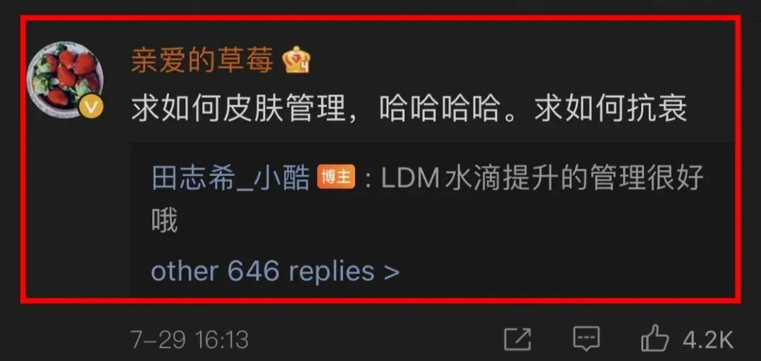 凭借美商出圈,刷出美貌新高度,小姐姐到底是使了什么变美魔法,才能做到“逆生长”的? 其实答案很简单:双眼皮手术+减肥+皮肤管理 被继续追问“如何皮肤管理”后,小姐姐也没有藏私,大方分享自己的“后天变美秘籍”就是——经常做「LDM水滴提升」