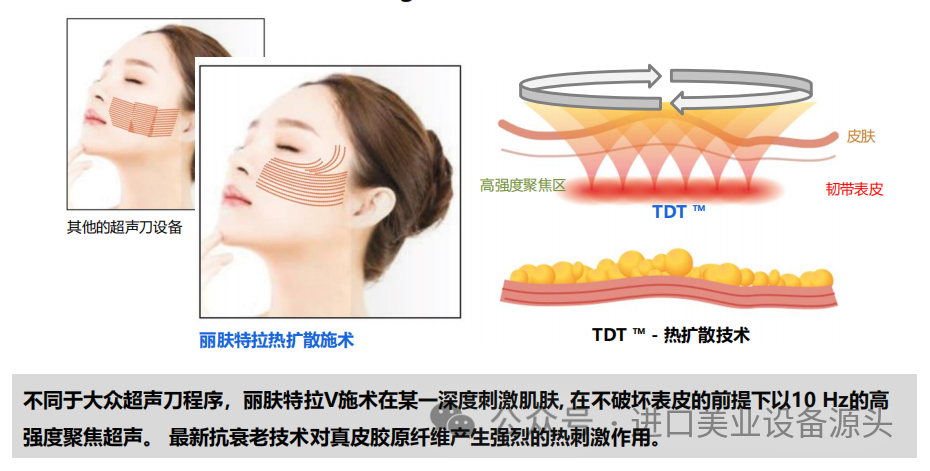 TDT是Thermal Diffusion Treatment的缩略词,是一种高强度聚焦热扩散技术。使Thermal Damage导致的副和作用产生的疼痛感大大降低。